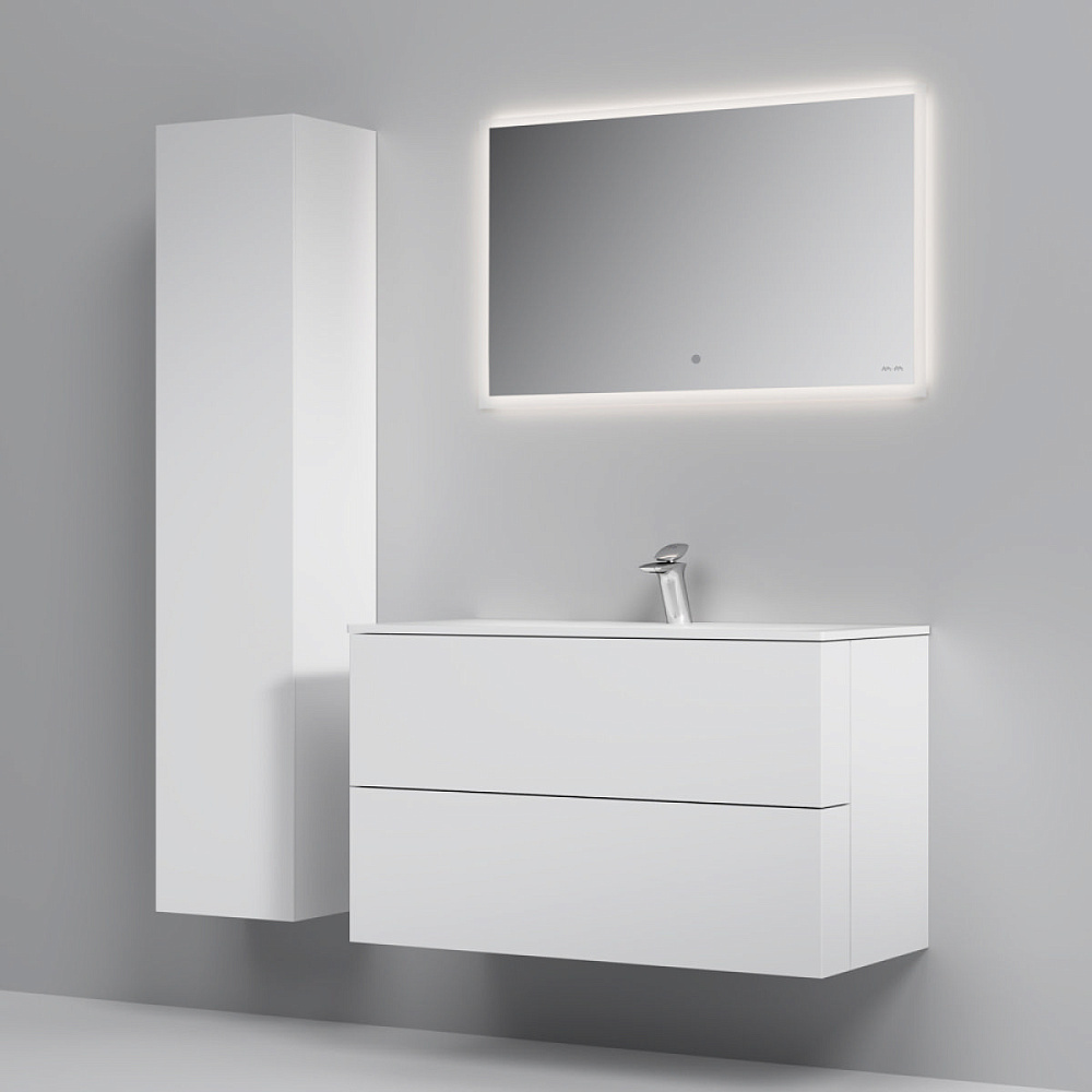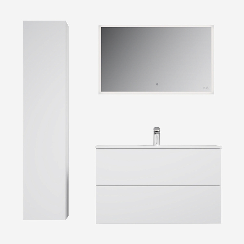 Комплект: Мебель для ванной с подвесной тумбой, 100 см, белый глянец