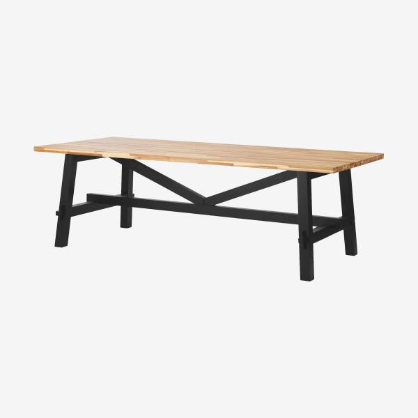 Этот лаконичный стол из металла и массива дерева станет комфортным рабочим местом даже в небольшом помещении.