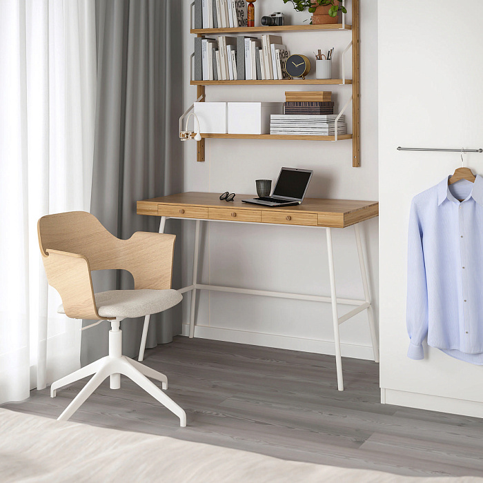 Благодаря лаконичному дизайнерскому решению эта мебель прекрасно впишется в любой интерьер. Можно дополнить другими столами и тумбами серии МИККЕ, чтобы увеличить рабочее место.