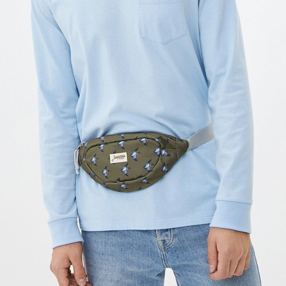Поясная сумка выполнена из плотной ткани на основе полиэстера. Детали: одно отделение на молнии, текстильная подкладка без кармана, регулируемый поясной ремень на фастекс.
