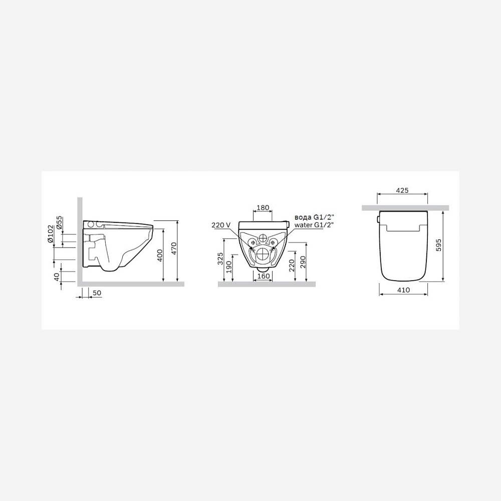 Унитаз подвесной безободковый, с электронной крышкой-биде