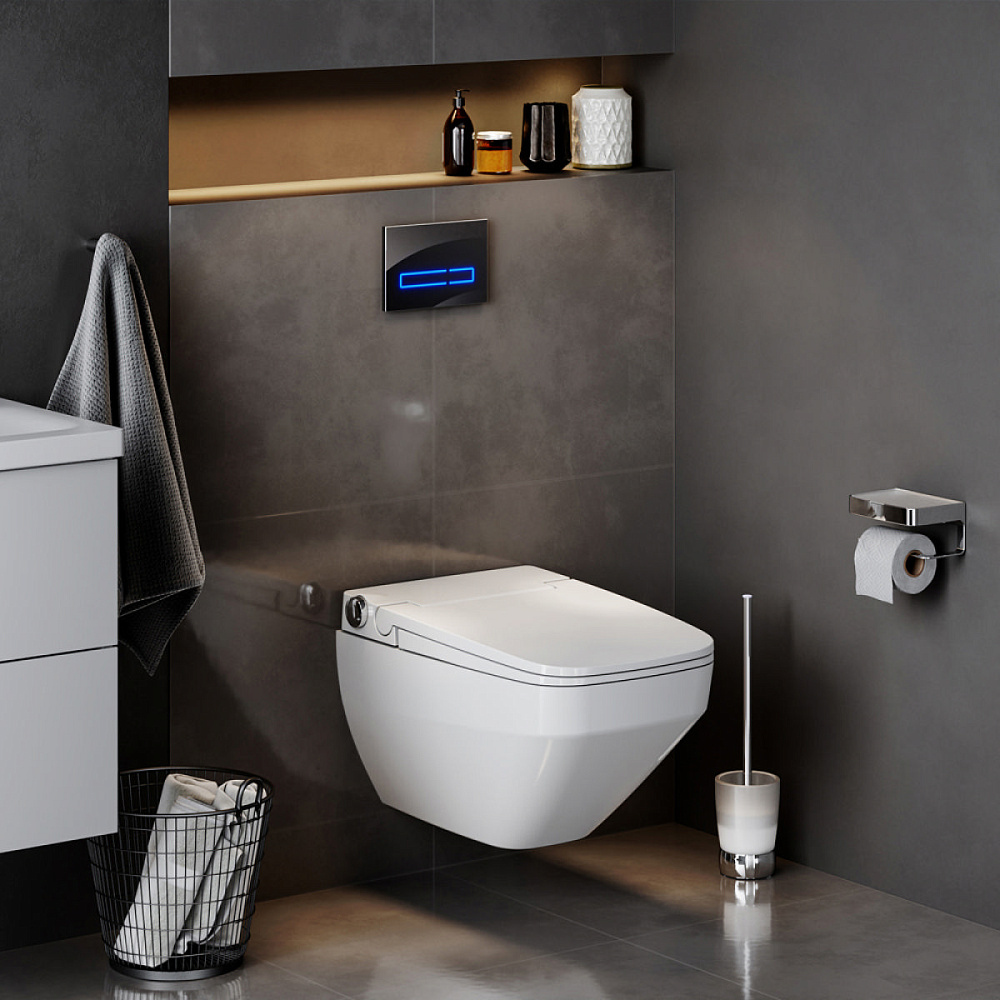 Экстраординарная комбинация премиальных функций – унитаз, отмеченный премиями в области дизайна, теперь с ультратонкой электронной крышкой-биде.